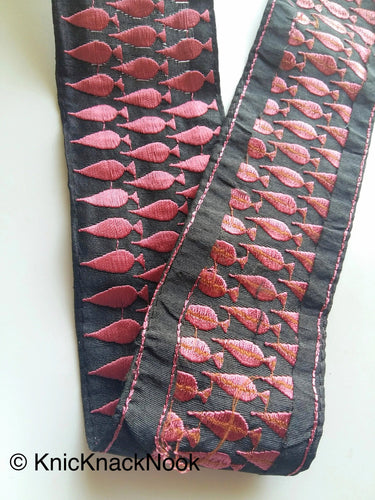 This listing is for a lovely Black Fabric Lace With Floral Design, Pink, Yellow, Purple And Green Thread Work Trim.