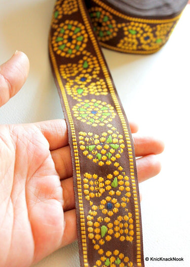 This listing is for a lovely Wholesale Brown, Gold And Beige Embroidery Fabric Lace Trim, Approx. 28mm Wide, 9 Yards, Jacquard Trim, Brown Trimming, Crafting Ribbon.