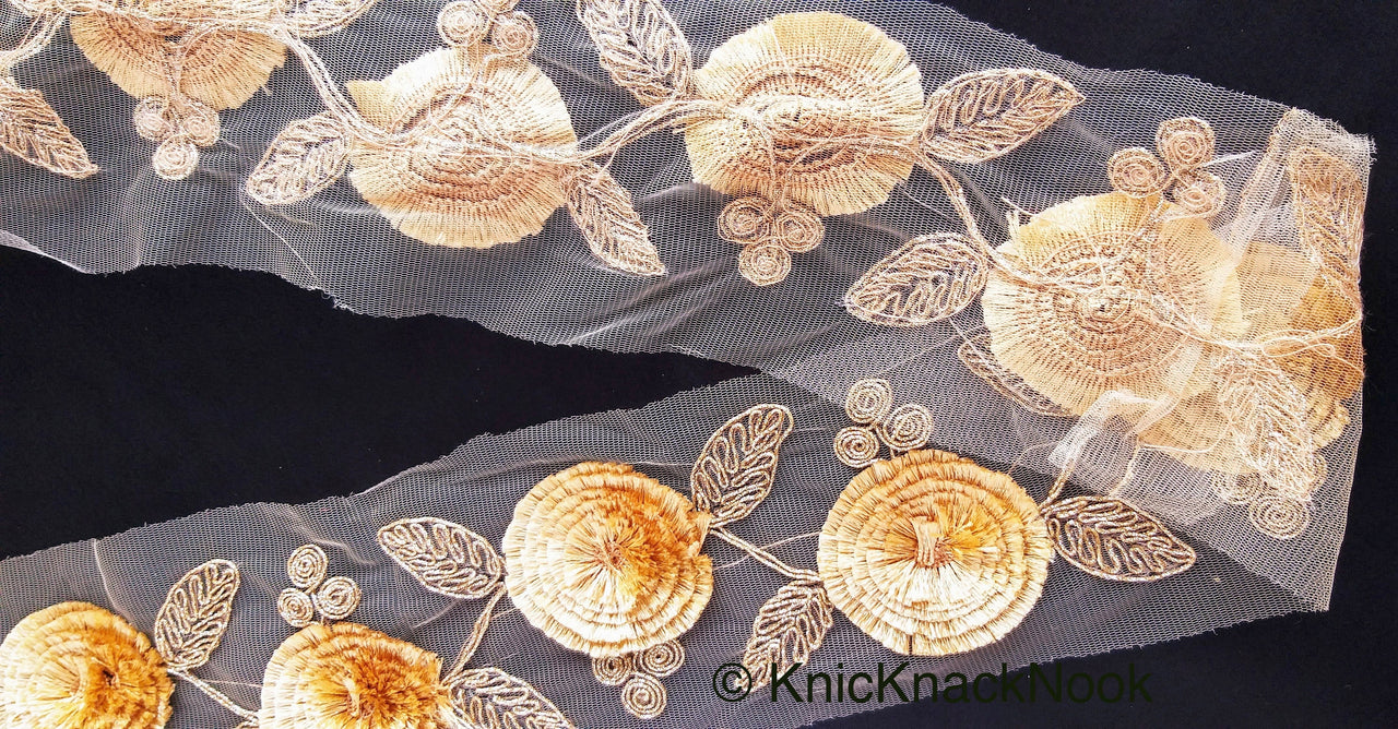 This listing is for a lovely Floral Embroidered Cutwork Trim, Yellow Embroidery, Beaded Floral Trim, Approx. 40mm Wide, Decorative Trim, Crafting Ribbon. This is a very unique fabric trim and a special KnicKnackNook find which you will not find anywhere else.