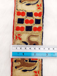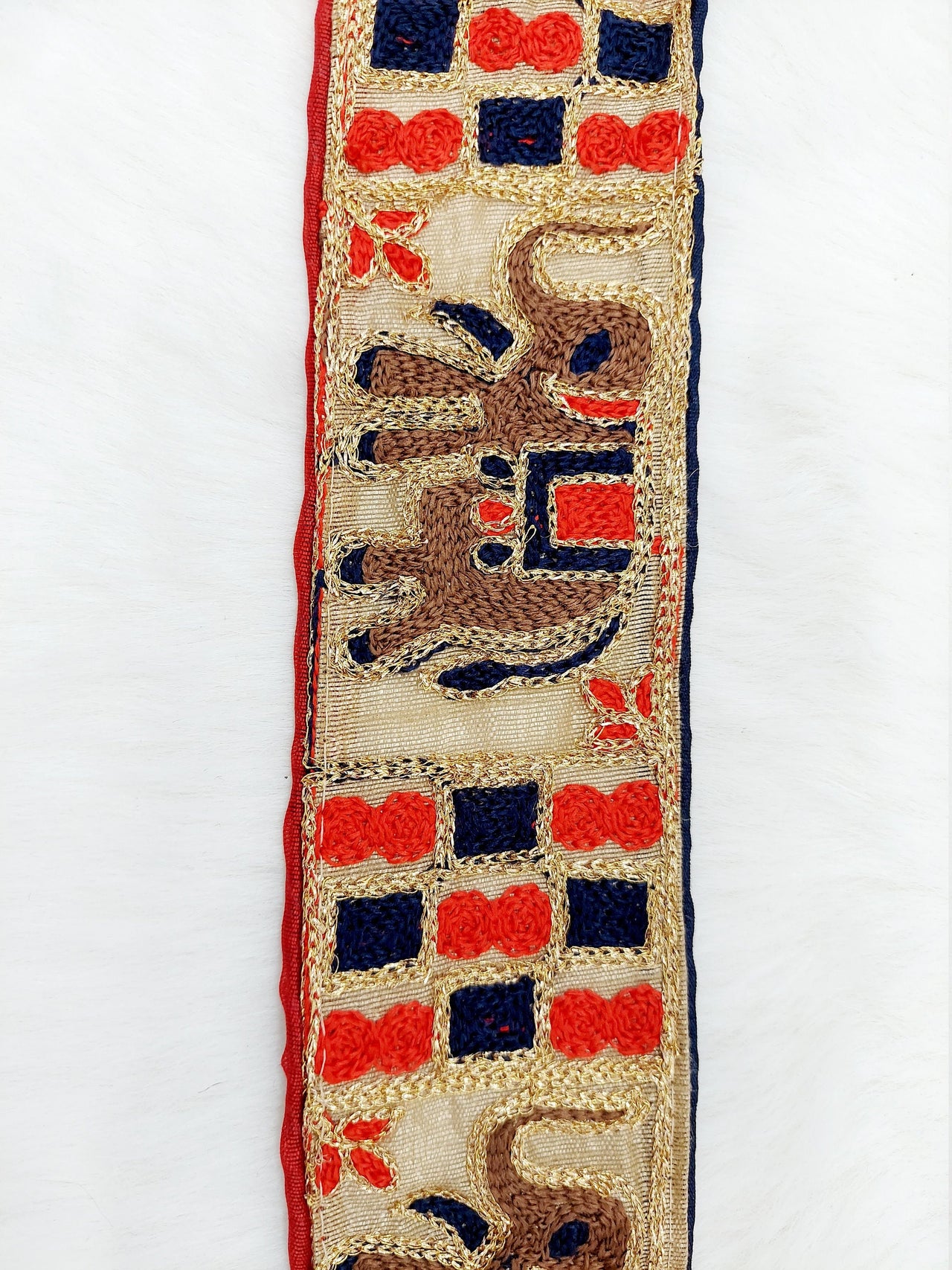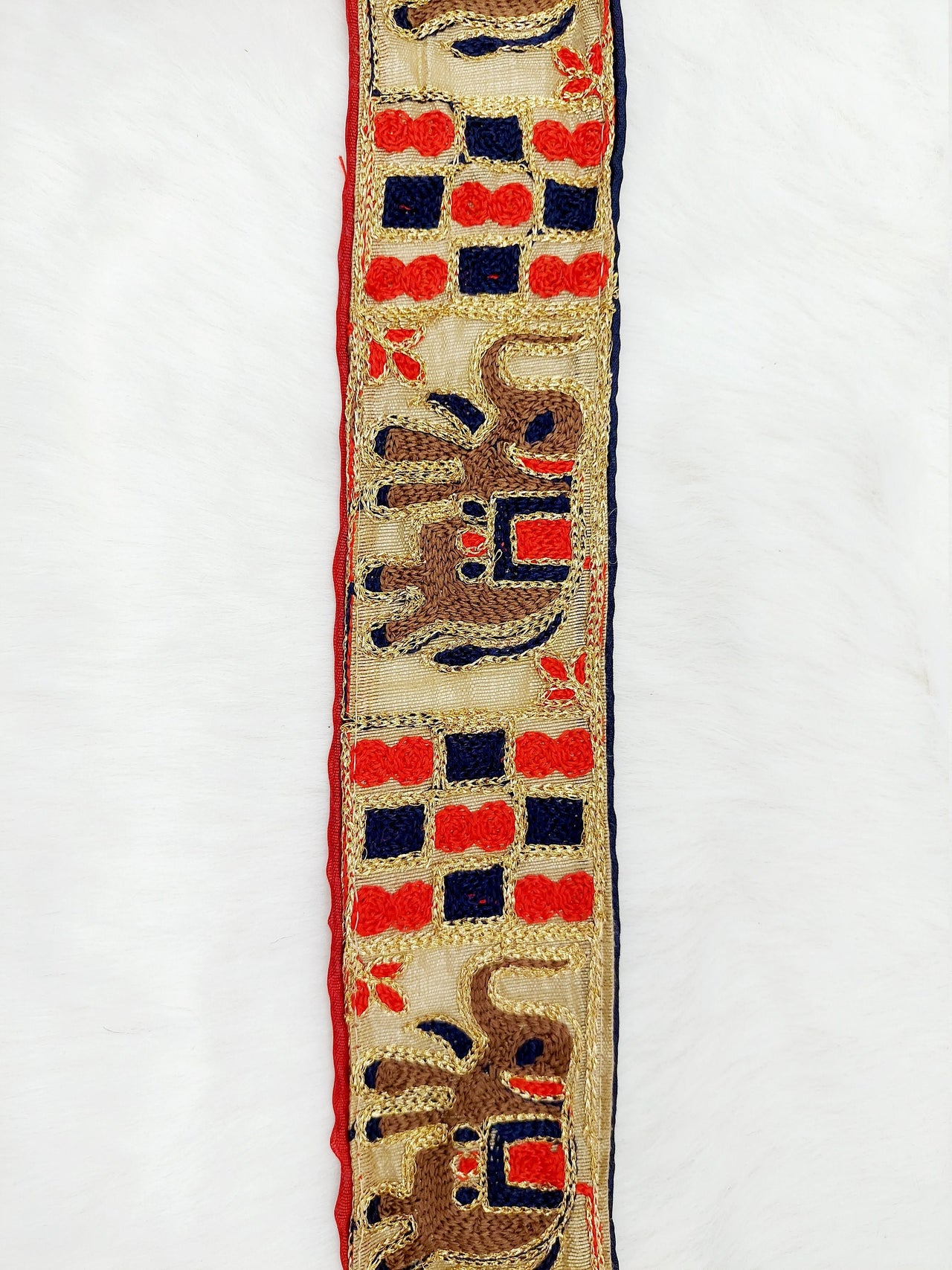 Beige Shimmer Gold Art Silk Fabric Trim with Elephant Embroidery, Lace Trim, Indian Lace Trim