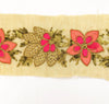 The embroidery on this trim is called Zardozi, an exclusive type of embroidery that is done by hand. Zardozi comes from two Persian words: zar or zarin meaning 'gold', and dozi meaning 'sewing'. Zardozi is a type of heavy and elaborate metal embroidery on a silk, satin, or velvet fabric base.