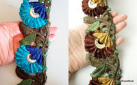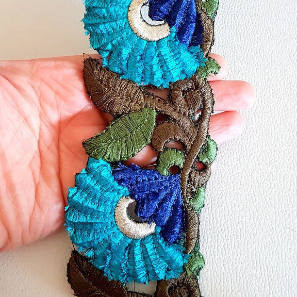 Blue And Green Floral Embroidery Trim, Flower Cut Work One Yard Lace Trim, Approx. 65mm Wide