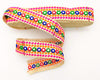 Blue Multicoloured Indian Mirror Trim Kutch Embroidered Navratri Garba Dress Trim Bridal Lace, Indian Sari Border 34 mm Wide Trim Per Yard