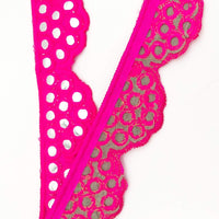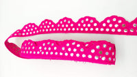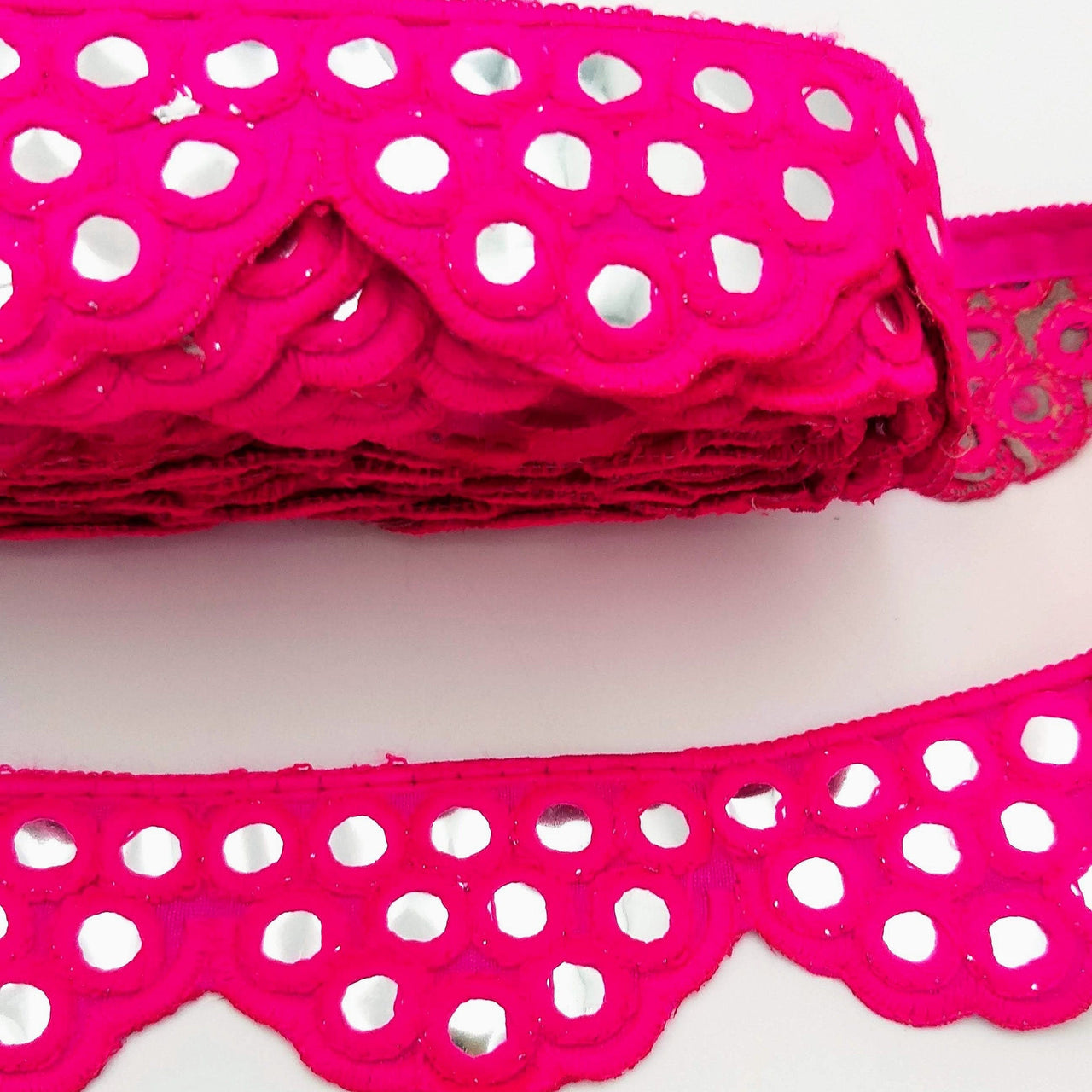 Fuchsia Pink Mirror Trim, Kutch Embroidered Navratri Garba Dress Trim Bridal Lace, Indian Sari Border 40 mm Wide Trim Per Yard