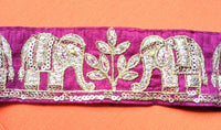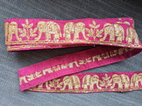 Maroon Art Silk Fabric Trim With Intricate Elephant Embroidery Antique Gold, Saree Border, Lace Trim