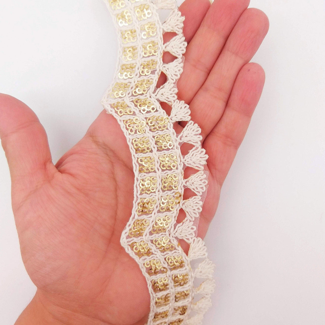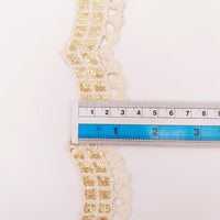 Nine Yards Off White Scallop Lace Trim Embroidered with Gold Sequins, Cutwork Trim, Scallops Wedding Trim