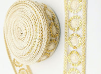 This listing is for a stunning Gold Zardozi Hand Embroidered Cutwork Lace Trim Beaded with Ivory Seed Beads, Wedding Saree Border Trim, Indian Trim, Wedding Trim, Bridal. This is a very unique trim and would make any creation stand out.