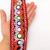 The embroidery on this trim is called Zardozi, an exclusive type of embroidery that is done by hand. Zardozi comes from two Persian words: zar or zarin meaning 'gold', and dozi meaning 'sewing'. Zardozi is a type of heavy and elaborate metal embroidery on a silk, satin, or velvet fabric base.