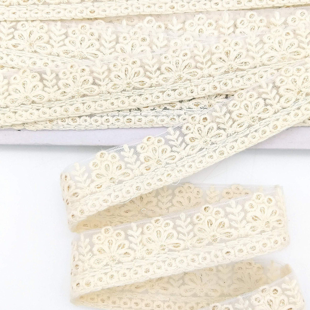 Off White Net Lace Trim With Floral Embroidery And Gold Sequins, Sequinned Trim, Wedding Trim Bridal Trim