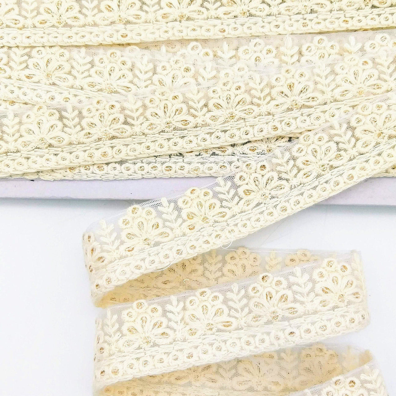 This listing is for a stunning Gold Zardozi Hand Embroidered Cutwork Lace Trim Beaded with Ivory Seed Beads, Wedding Saree Border Trim, Indian Trim, Wedding Trim, Bridal. This is a very unique trim and would make any creation stand out.