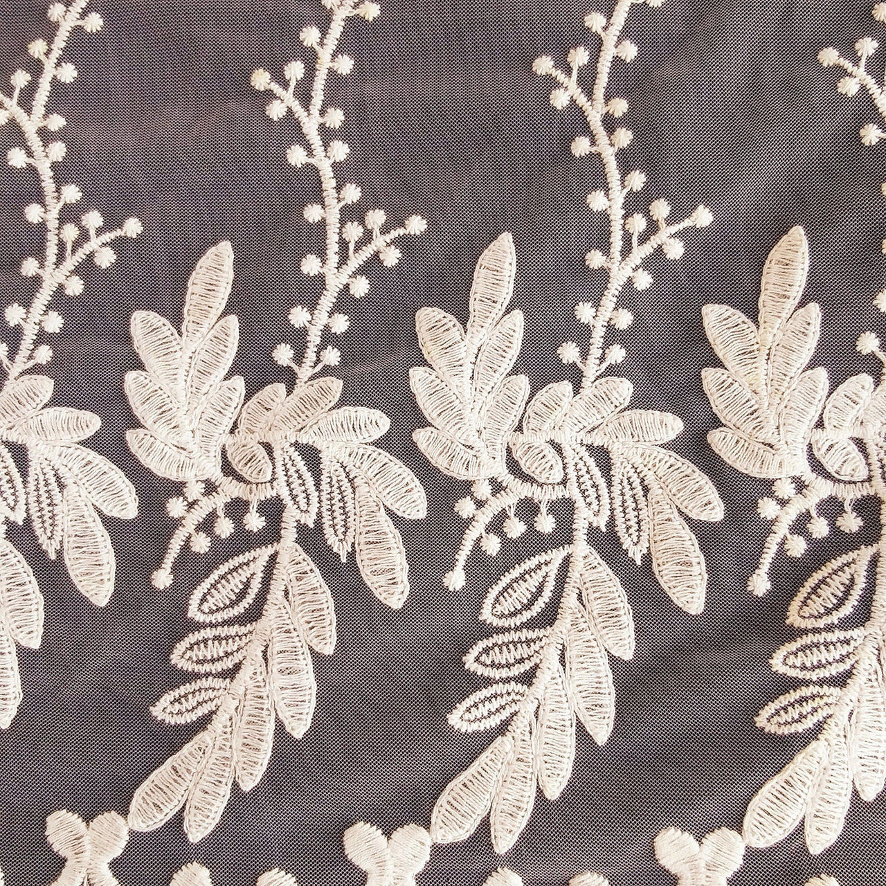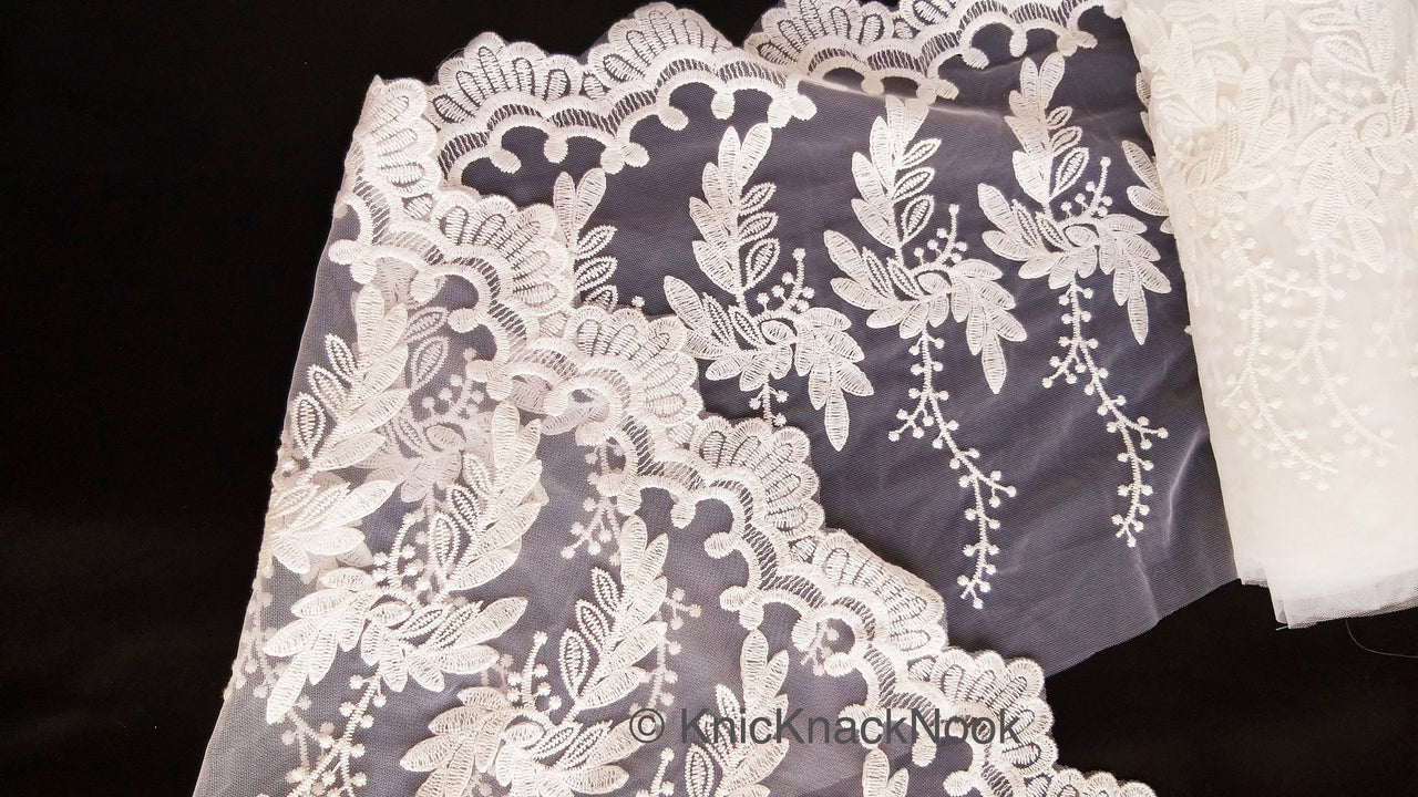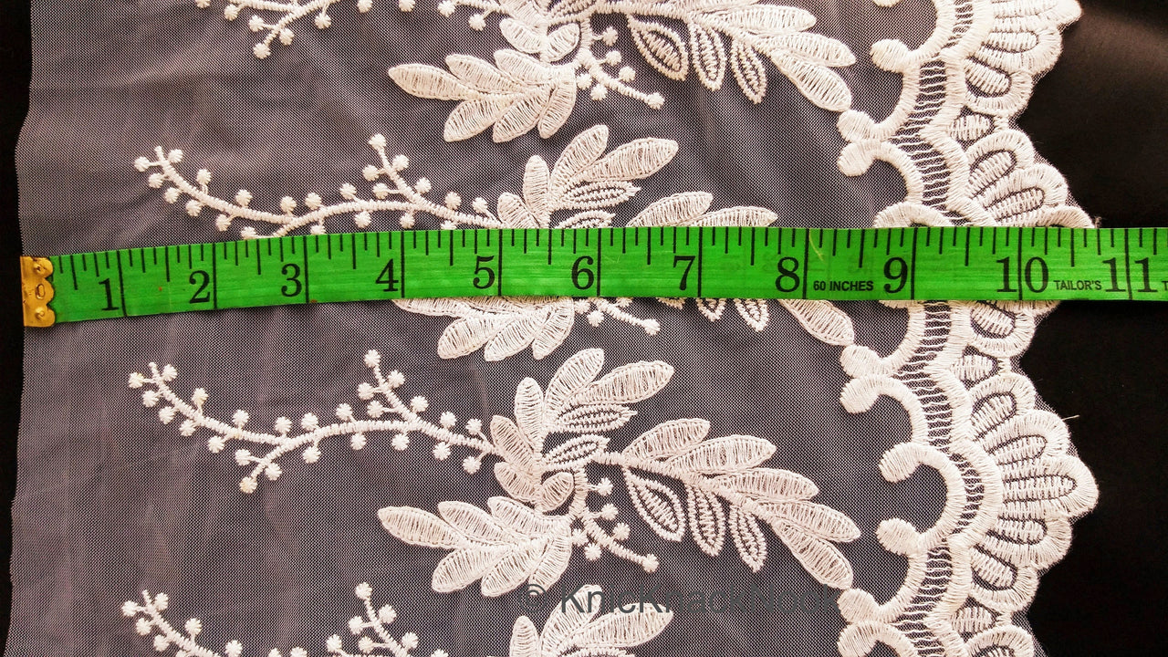 White Net Trim With Beautiful Floral Embroidery, Approx. 10.5 Inches wide, Lace Trim