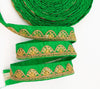 The embroidery on this trim is called Zardozi, an exclusive type of embroidery that is done by hand. Zardozi comes from two Persian words: zar or zarin meaning 'gold', and dozi meaning 'sewing'. Zardozi is a type of heavy and elaborate metal embroidery on a silk, satin, or velvet fabric base.