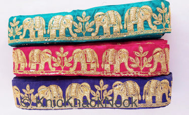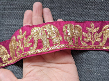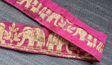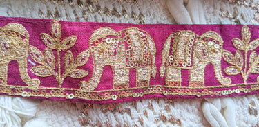 This listing is for a lovely Maroon Art Silk Fabric Trim With Intricate Elephant Embroidery Antique Gold, Saree Border, Lace Trim, Indian Lace Trim, Embroidered Trim. This is a very unique fabric trim and a special KnicKnackNook find which you will not find anywhere else.