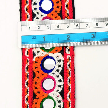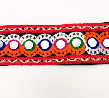 This listing is for a lovely Black Cotton Fabric Trim with Multicolor Embroidery and Real Mirror, Kutch Embroidery Trim, Mirror Lace, Decorative Border.