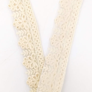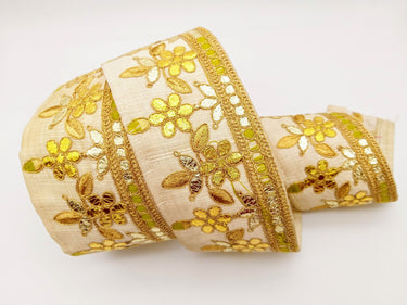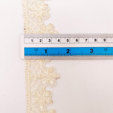 This listing is for a lovely Off White Net Lace Trim With Floral Embroidery And Gold Sequins, Sequinned Trim, Wedding Trim Bridal Trim, Approx. 28mm, Trim By Yard