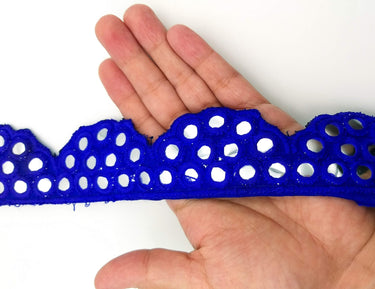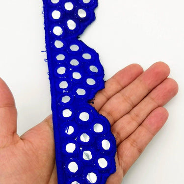 This listing is for a lovely Royal Blue Mirror Trim, Kutch Embroidered Navratri Garba Dress Trim Bridal Lace, Indian Sari Border 40 mm Wide Trim Per Yard.