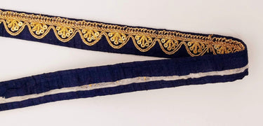 This listing is for a lovely Navy Blue Art Silk Trim with Gold Embroidery and Sequins Indian Sari Border Trim By 3 Yards Decorative Trim Craft Lace.