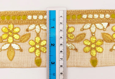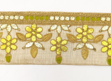 This listing is for a lovely Beige Art Silk Fabric Trim, Olive Green & Gold Floral Embroidery Gota Patti Indian Sari Border Trim By Yard Decorative Trim Craft Lace. The embroidery work on this trim is a speciality of Indian embroidery and the work is called Gota Patti.