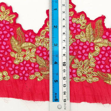 This listing is for a lovely Fuchsia Pink Silk Fabric Trim, Pink & Gold Floral Embroidery Indian Sari Border Trim By Yard Decorative Trim Craft Lace.