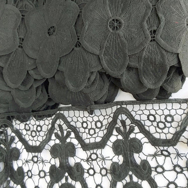 This listing is for a Black Floral Embroidery Crochet (Cotton) One Yard Lace Trim.