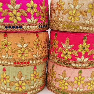 The embroidery work with mirrors on this trim is a speciality of Indian workmanship and is called as 'Abla Work' Or 'Shisha Work'. This is a very unique fabric trim and a special KnicKnackNook find which you will not find anywhere else.
