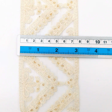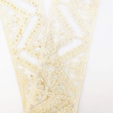 This listing is for a lovely White Soft Net Lace Trim With Floral Embroidery And Gold Sequins, Sequinned Trim, Wedding Trim Bridal Trim, Approx. 75mm, Trim By Yard