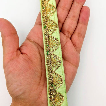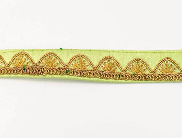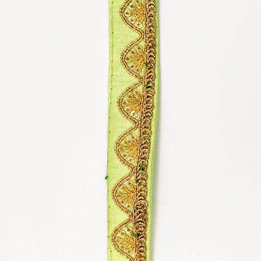 This listing is for a lovely Pastel Green Art Silk Trim with Gold Embroidery and Sequins Indian Sari Border Trim By 3 Yards Decorative Trim Craft Lace.
