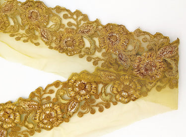 This listing is for a lovely Yellow Ochre Net Fabric Lace Trim with Floral Embroidery, Lace Trim, Sari Border, Embroidered Trim, Trim By Yard. This is a very unique fabric trim and a special KnicKnackNook find which you will not find anywhere else.
