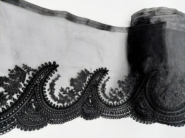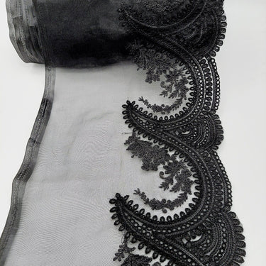 This listing is for a lovely Black Organza Fabric Scalloped Cutwork Lace Trim with Floral Embroidery, Sari Border, Embroidered Trim, Trim By Yard. This is a very unique fabric trim and a special KnicKnackNook find which you will not find anywhere else.