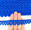 The embroidery on this trim is called Zardozi, an exclusive type of embroidery that is done by hand. Zardozi comes from two Persian words: zar or zarin meaning 'gold', and dozi meaning 'sewing'. Zardozi is a type of heavy and elaborate metal embroidery on a silk, satin, or velvet fabric base.