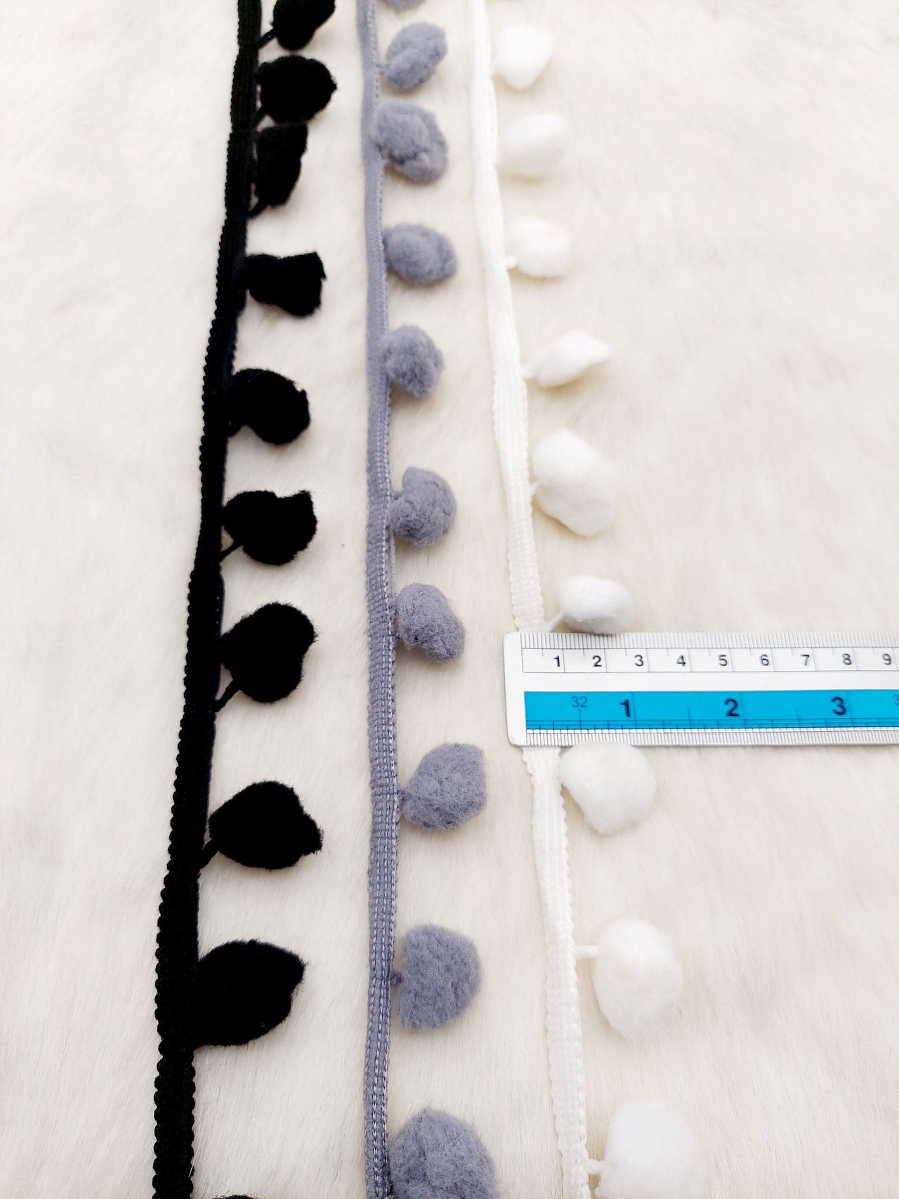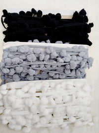 9 yards x Wholesale Black Grey White Pom Pom Fringe Trim, Pompom Trimming, Tassels