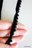 The embroidery on this trim is called Zardozi, an exclusive type of embroidery that is done by hand. Zardozi comes from two Persian words: zar or zarin meaning 'gold', and dozi meaning 'sewing'. Zardozi is a type of heavy and elaborate metal embroidery on a silk, satin, or velvet fabric base.