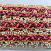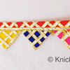 The embroidery on this trim is called Zardozi, an exclusive type of embroidery that is done by hand. Zardozi comes from two Persian words: zar or zarin meaning 'gold', and dozi meaning 'sewing'. Zardozi is a type of heavy and elaborate metal embroidery on a silk, satin, or velvet fabric base.