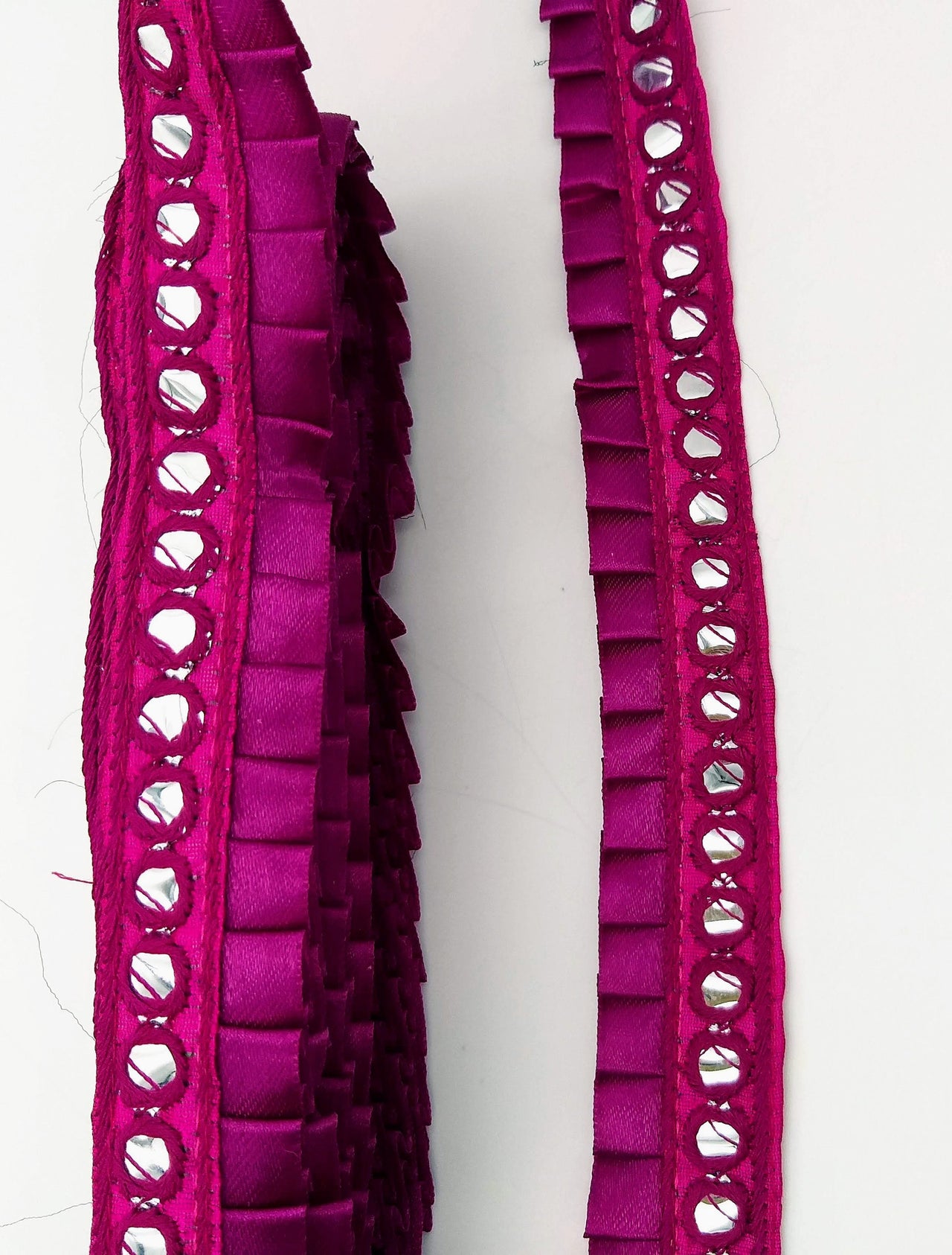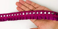 Dark Violet Satin Pleated Lace Trim, Mirrored Fringe Trimming, Approx. 30mm wide