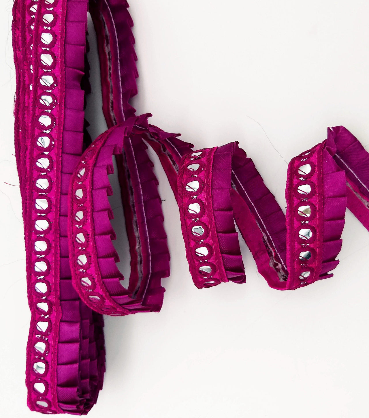 This listing is for a lovely Dark violet Satin Pleated Lace Trim, Mirrored Fringe Trimming, Approx. 30mm wide, Satin Ribbon, Trim By 3 Yards