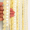 This listing is for a lovely Floral Embroidered Cutwork Trim, Yellow Embroidery, Beaded Floral Trim, Approx. 40mm Wide, Decorative Trim, Crafting Ribbon. This is a very unique fabric trim and a special KnicKnackNook find which you will not find anywhere else.