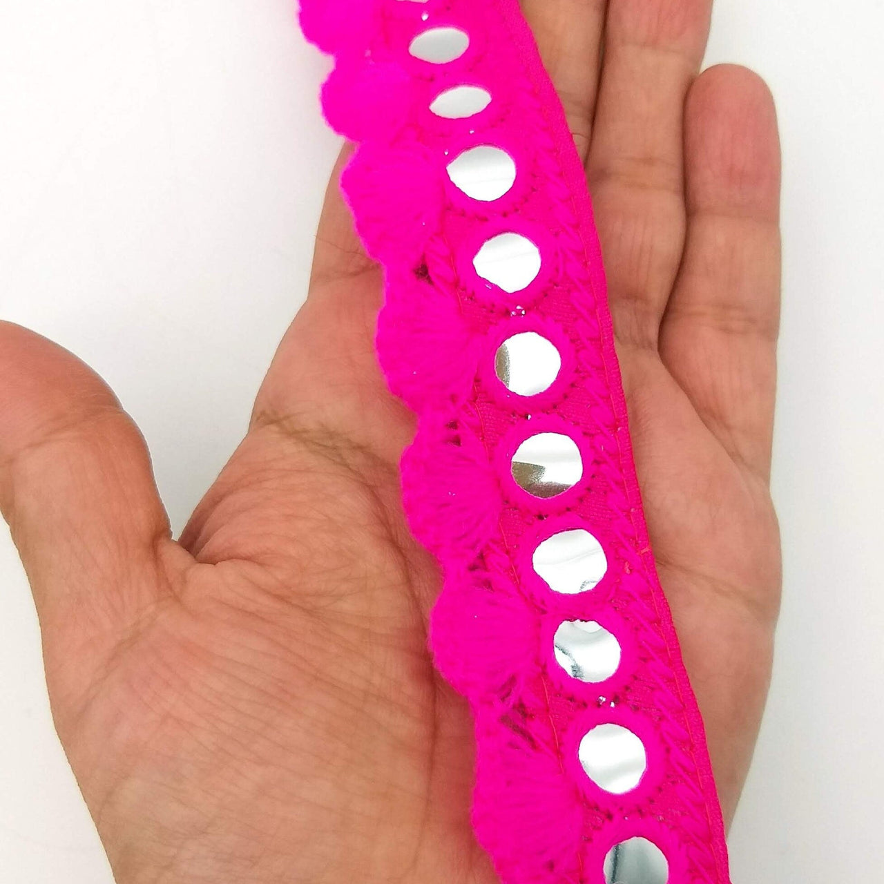 Fuchsia Pink Fringe Trim With Mirrors, Boho, Bohemian Trim