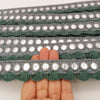 The embroidery on this trim is called Zardozi, an exclusive type of embroidery that is done by hand. Zardozi comes from two Persian words: zar or zarin meaning 'gold', and dozi meaning 'sewing'. Zardozi is a type of heavy and elaborate metal embroidery on a silk, satin, or velvet fabric base.
