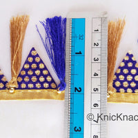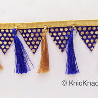 Gold Fringe Bunting Trim In Royal Blue & Gold Check Pattern With Royal Blue And Copper Thread Tassels, Decorative Trim, Tassels Trim