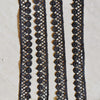 The embroidery on this trim is called Zardozi, an exclusive type of embroidery that is done by hand. Zardozi comes from two Persian words: zar or zarin meaning 'gold', and dozi meaning 'sewing'. Zardozi is a type of heavy and elaborate metal embroidery on a silk, satin, or velvet fabric base.