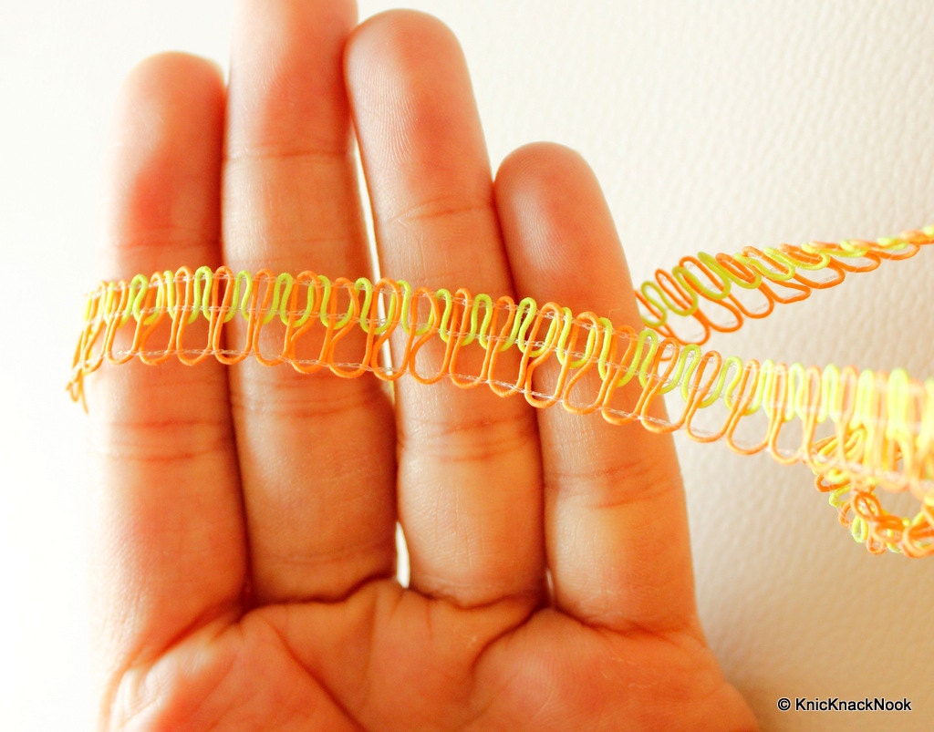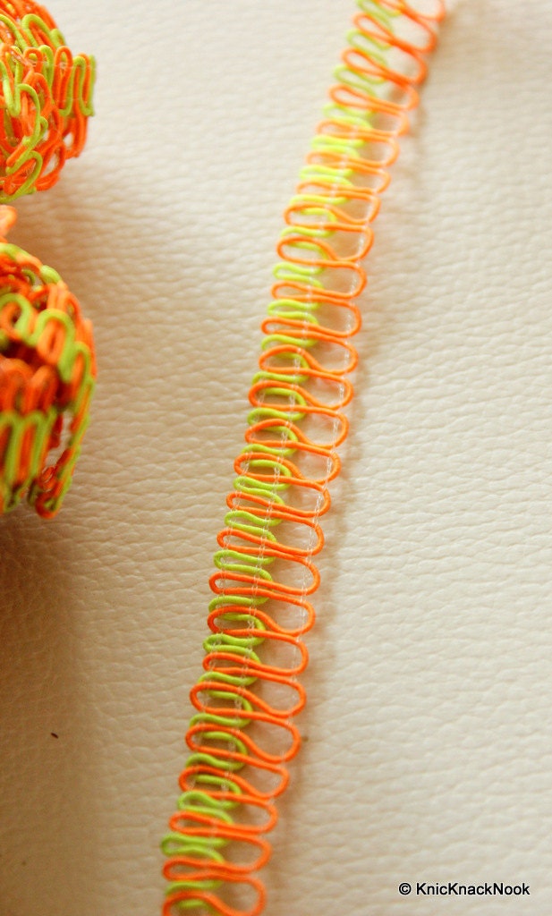 Neon Green And Neon Orange Thread Lace Trim, 10mm wide