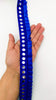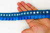 The embroidery on this trim is called Zardozi, an exclusive type of embroidery that is done by hand. Zardozi comes from two Persian words: zar or zarin meaning 'gold', and dozi meaning 'sewing'. Zardozi is a type of heavy and elaborate metal embroidery on a silk, satin, or velvet fabric base.