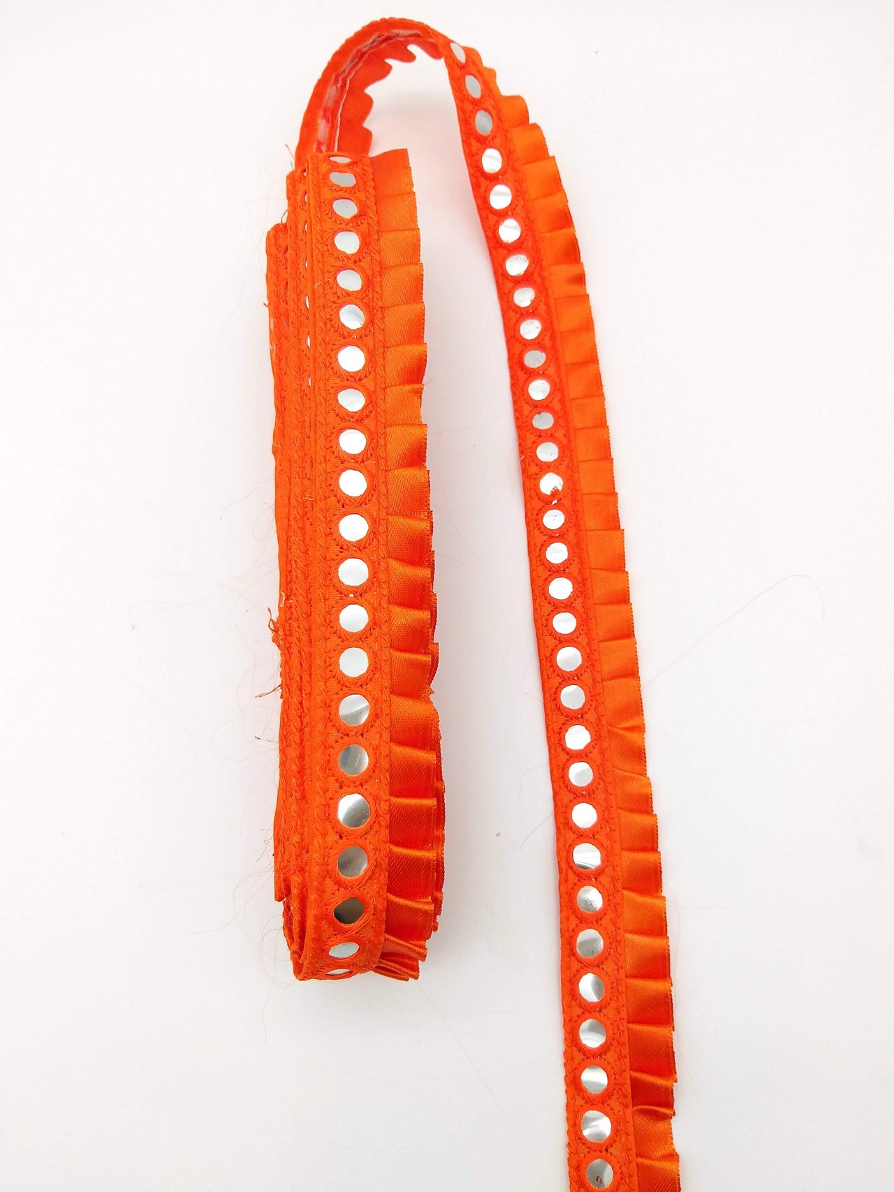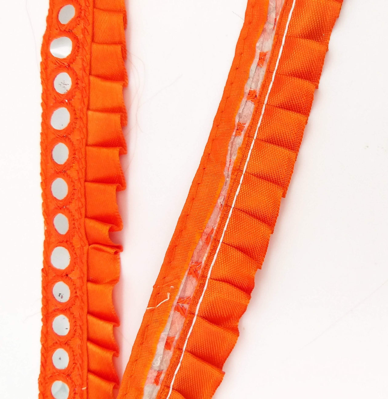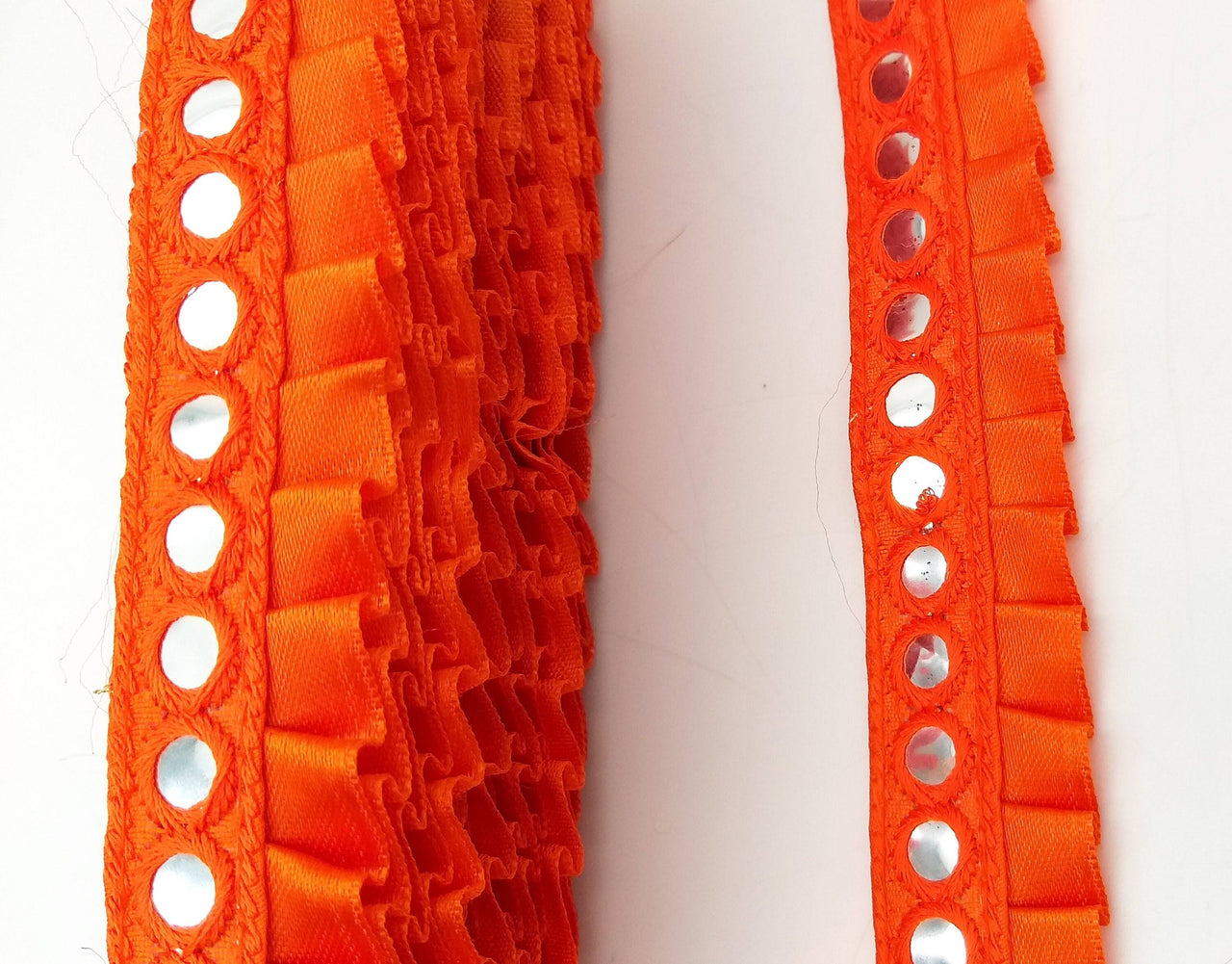 Orange Satin Pleated Lace Trim, Mirrored Fringe Trimming, Approx. 30mm wide