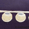 The embroidery on this trim is called Zardozi, an exclusive type of embroidery that is done by hand. Zardozi comes from two Persian words: zar or zarin meaning 'gold', and dozi meaning 'sewing'. Zardozi is a type of heavy and elaborate metal embroidery on a silk, satin, or velvet fabric base.