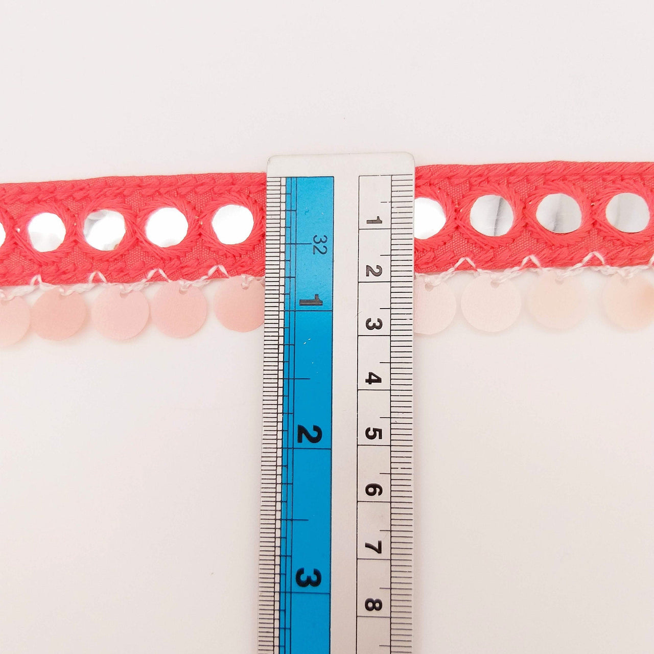 Salmon Pink Fringe Trim With Mirrors And Sequins Tassels, Boho, Bohemian Trim