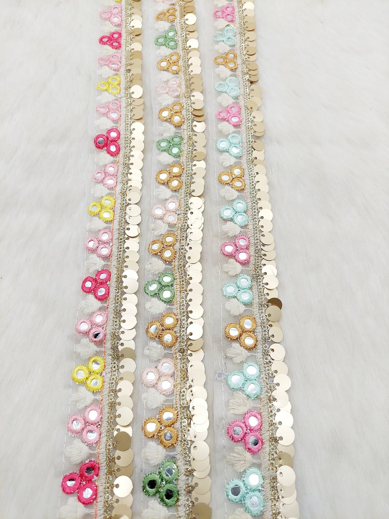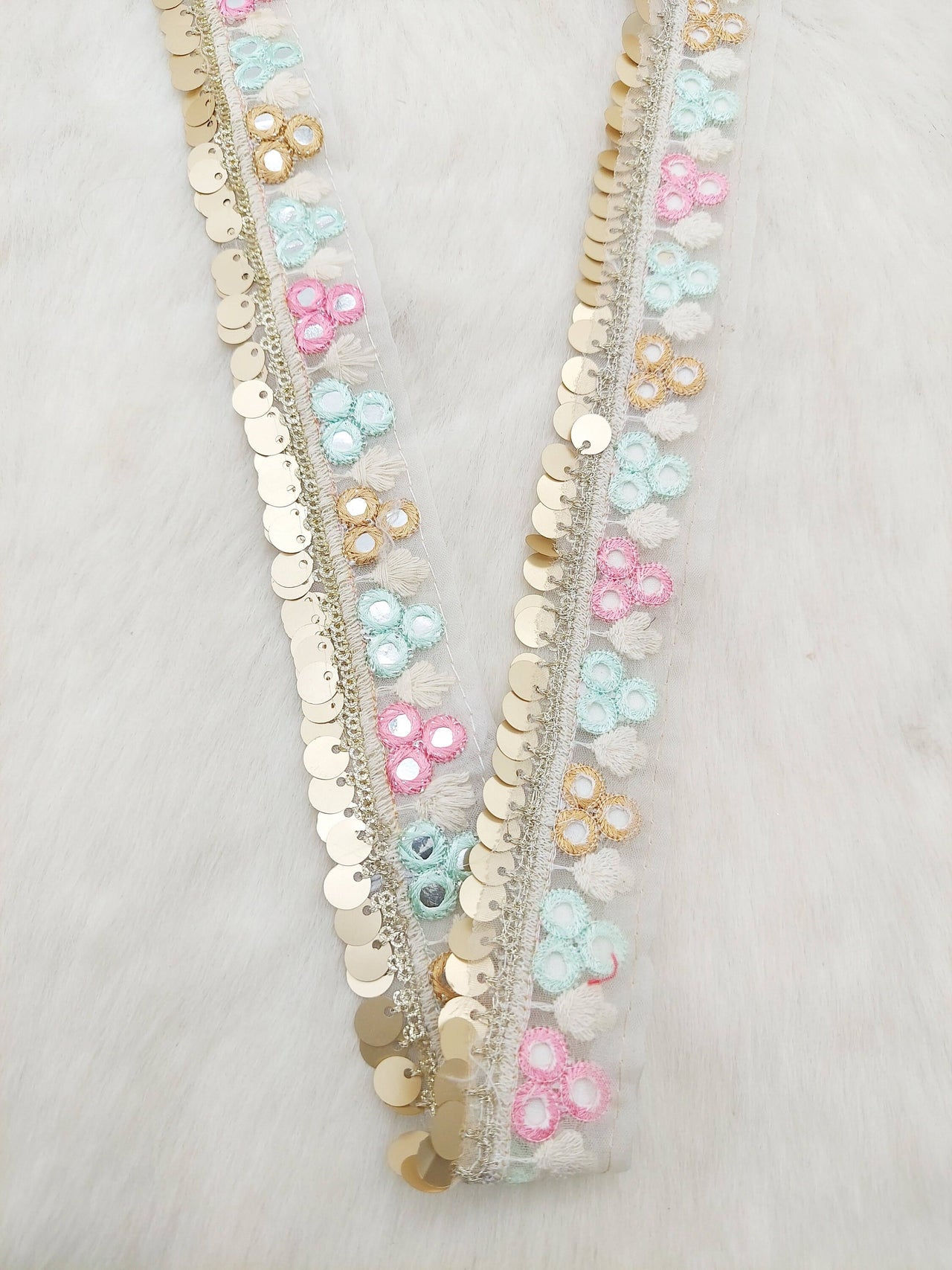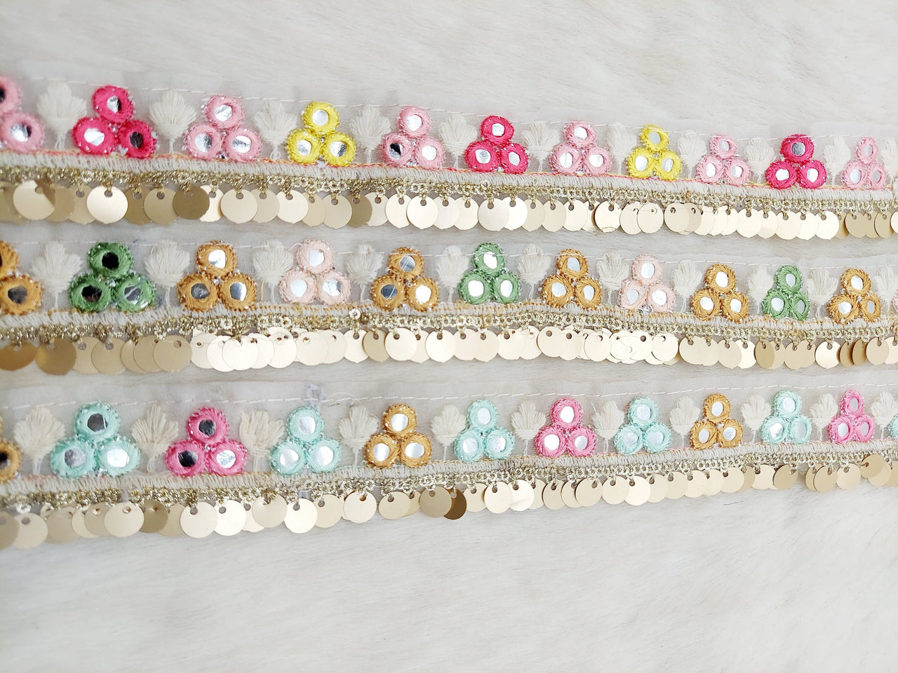 White Fringe Trim With Mirrors, Boho, Bohemian Trim