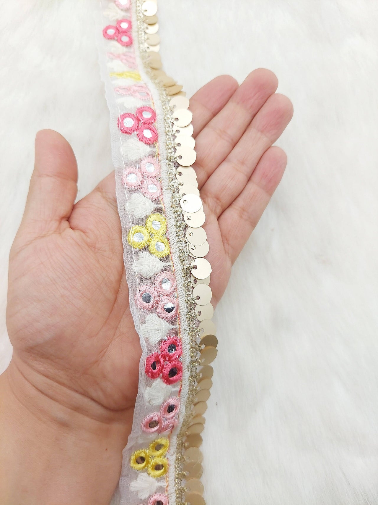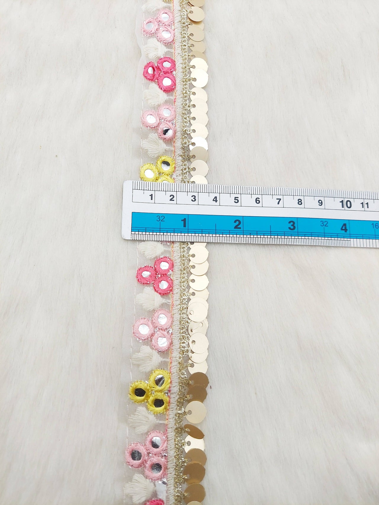 This listing is for a lovely Floral Embroidered Cutwork Trim, Yellow Embroidery, Beaded Floral Trim, Approx. 40mm Wide, Decorative Trim, Crafting Ribbon. This is a very unique fabric trim and a special KnicKnackNook find which you will not find anywhere else.