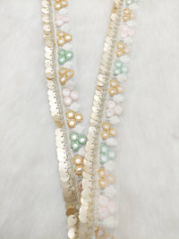 This listing is for a lovely White Pearl And Rhinestones Beads Net Lace Trim, Floral Trim, One Yard, Wedding Trim, Wedding Laces, Approx. 80mm Wide.