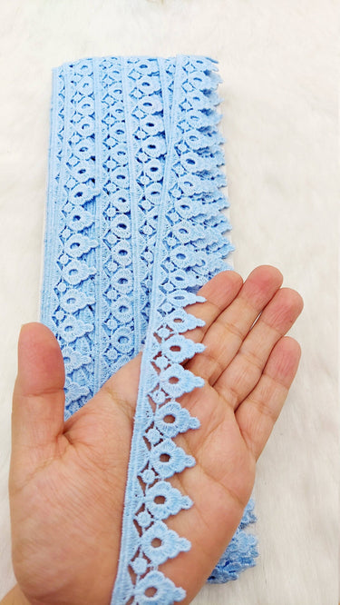 This listing is for a lovely Blue Embroidery Polyester Lace Trim.