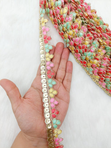 This listing is for Gold Sequins Floral Embroidery Tissue Fabric Scallop, Cutwork Lace Trim, Decorative Trim, 9 Yards